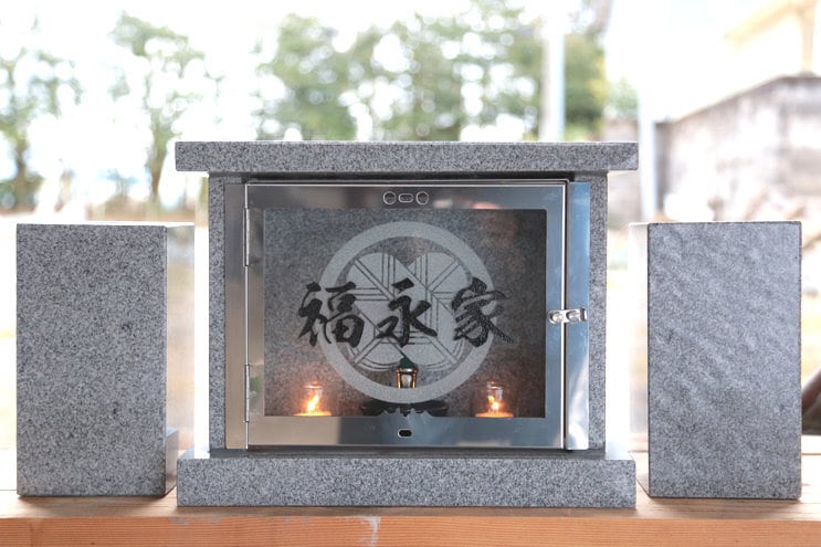 ガラスは透明なタイプ、擦りガラス、家紋入りなどお選び頂けます。